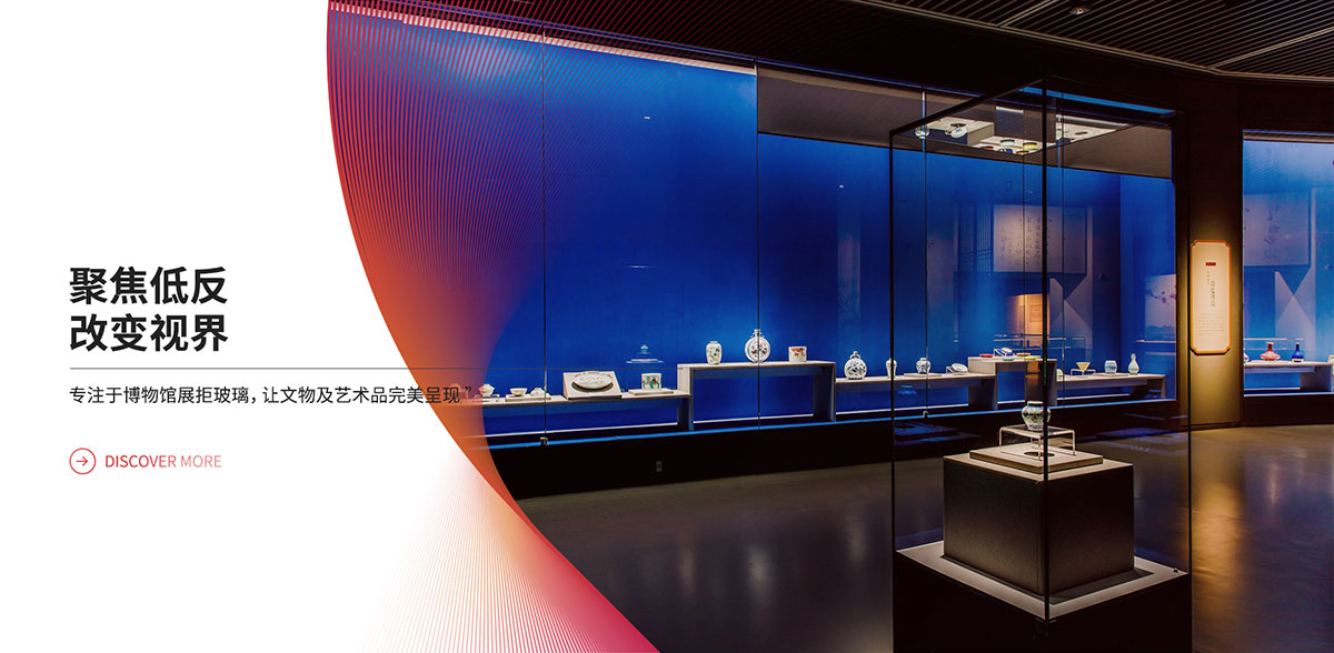 Varme-reflekterende glass med lav overføring av high-end kommersielle skjermskap, museumsskjermskap, varme-reflekterende glass med lav transmittans for high-end merkevarebutikkvinduer og showroomglass.
